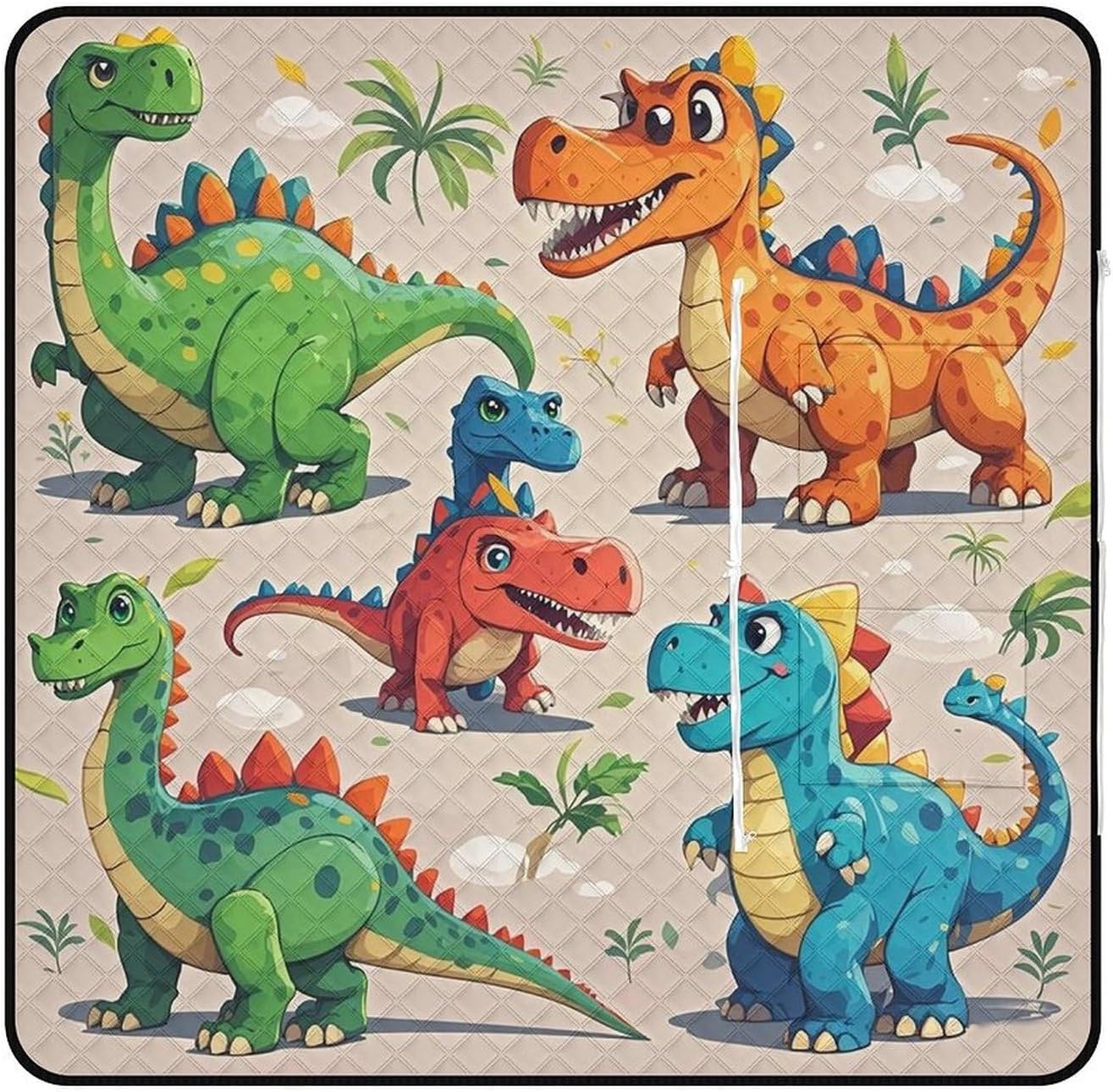 Cartoon Dinosaur Picnic Blankets Waterproof Blanket Outdoor Beach Blanket with Tote Bag Design, Foldable Picnic Mat for Camping, Beach, Park 150x150cm
