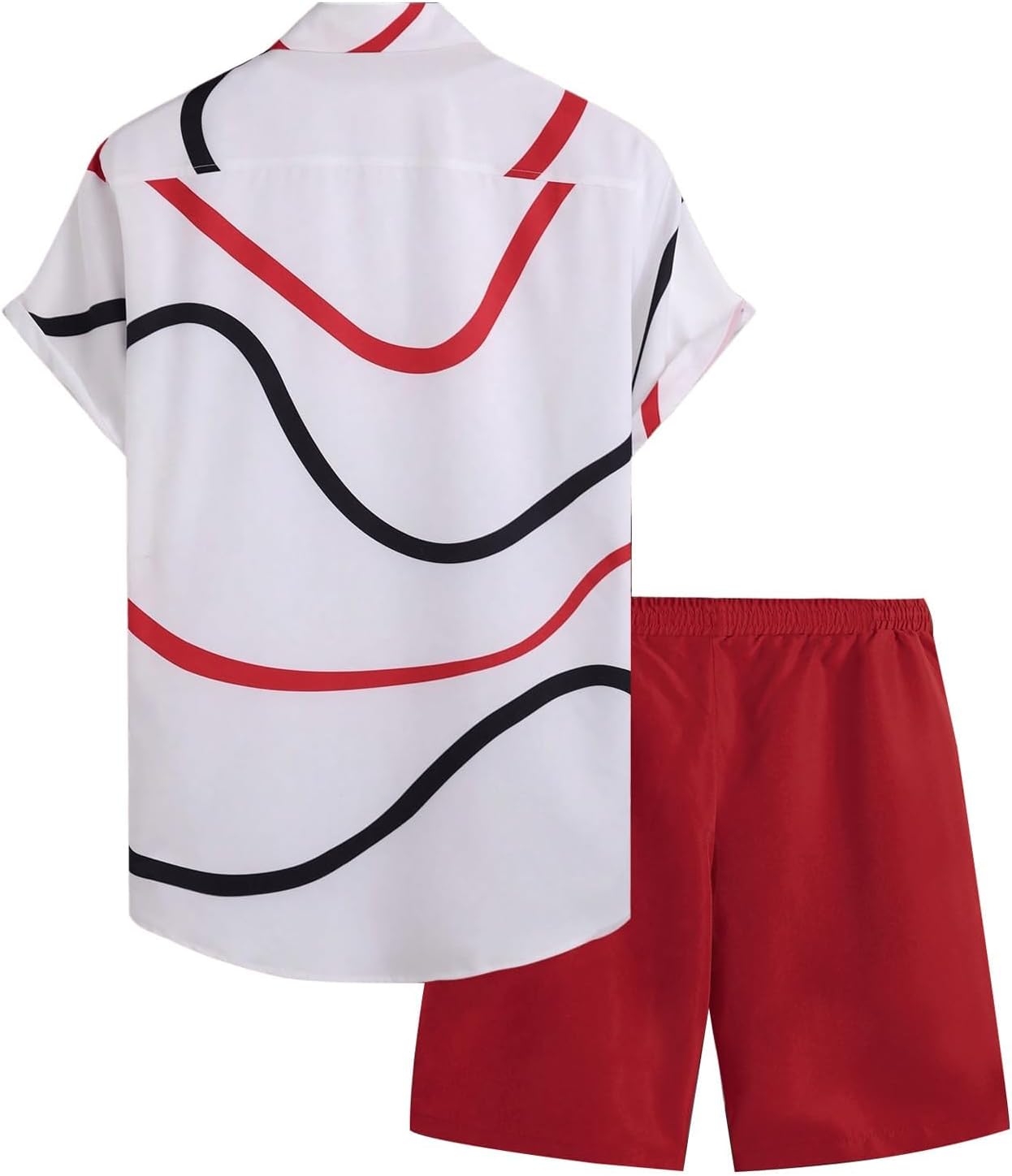 Men’s 2 Piece Hawaiian Outfits Short Sleeve Button Down Shirt and Shorts Set Beach Tracksuits