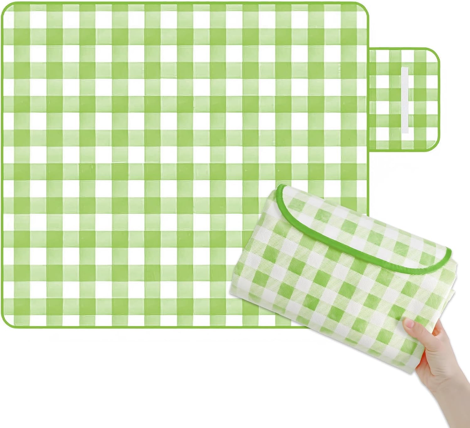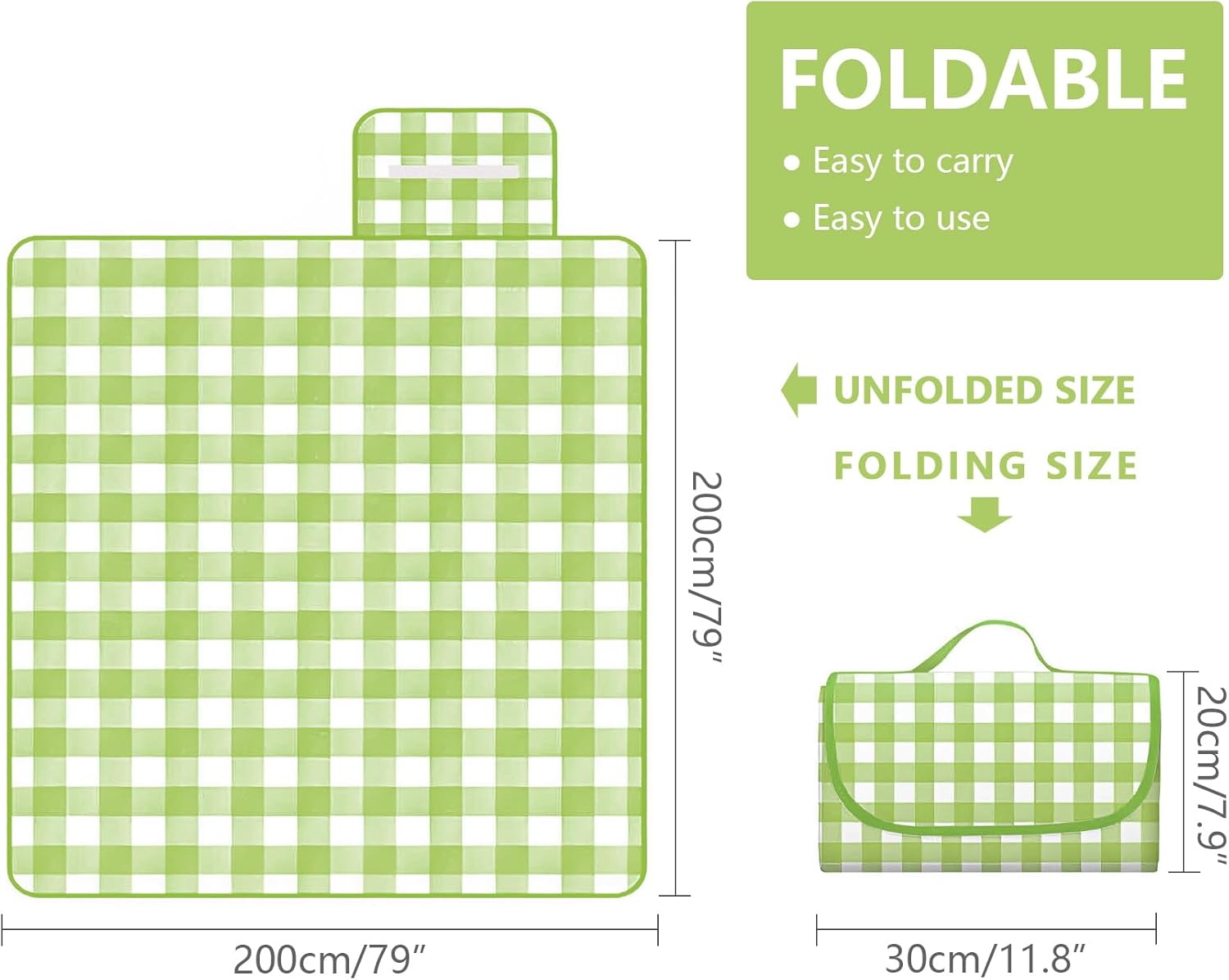 Picnic Blankets,80″X80″ Outdoor Picnic Blanket, Picnic Mat for Beach, Grassland, Foldable Portable, Easy to Clean,Waterproof,Sandproof (Green, 80″*80″)