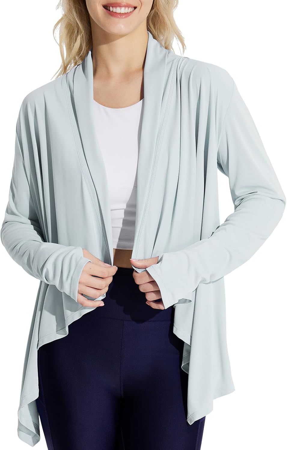 Women’s UPF 50+ Beach Cover Up Lightweight Cardigan Sun Shirts Long Sleeve SPF Sun Wrap with Pocket Outdoor